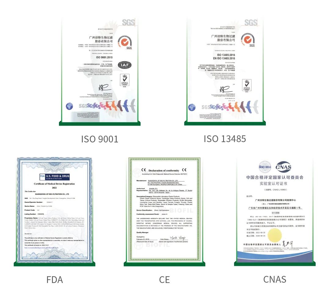 潔特生物CellSafe™系列產(chǎn)品均嚴(yán)格按照GMP標(biāo)準(zhǔn)規(guī)范、ISO 13485、ISO 9001質(zhì)量管理體系、CE、FDA、CNAS要求實(shí)施嚴(yán)苛生產(chǎn)管理與質(zhì)量管控。