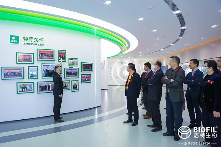 隨后,在潔特生物董事長袁建華,董事、總經(jīng)理YuanYe James的帶領(lǐng)下,嘉賓們分批參觀潔特產(chǎn)業(yè)園,對潔特生物企業(yè)展廳、智能制造生產(chǎn)車間、辦公區(qū)、潔特檢測中心、潔特孵化器樣板間、會議中心等進行了詳細了解。