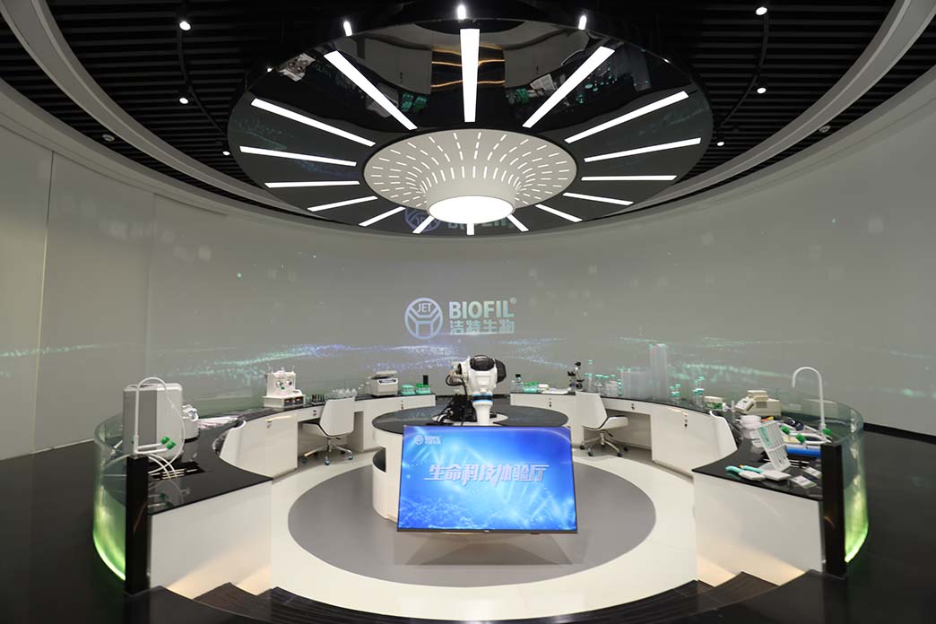 除此之外,潔特生物企業(yè)展廳特設(shè)沉浸式生命科學體驗廳,通過模擬實驗室場景,生動地展示了潔特生物產(chǎn)品的關(guān)鍵用途,讓參觀來賓零距離地體驗“小瓶罐也有大用處”。