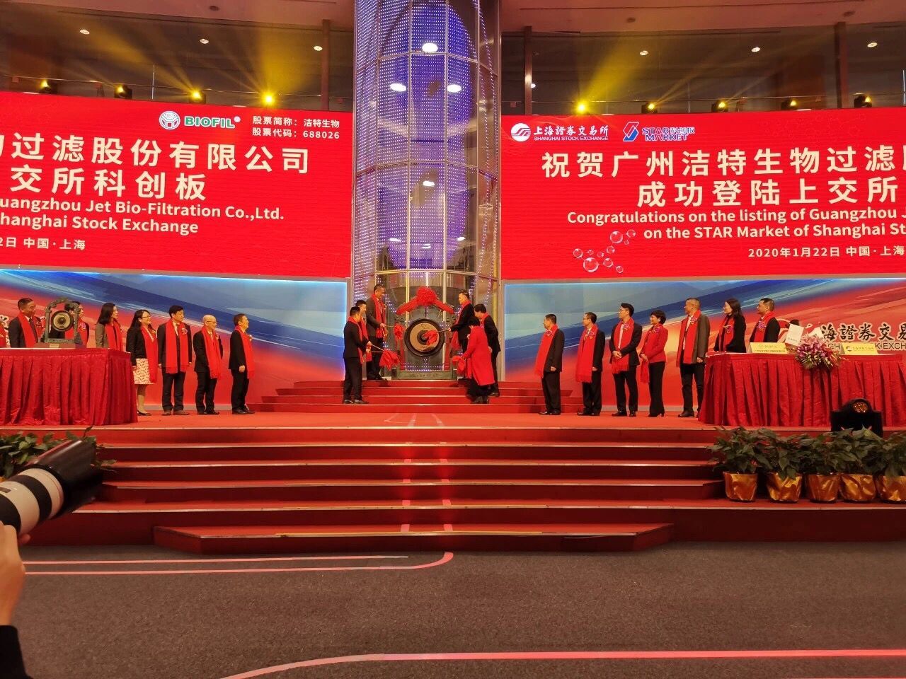 1月22日,廣州潔特生物過濾股份有限公司在上海證券交易所科創(chuàng)板成功上市,證券簡稱為“潔特生物”,證券代碼為“688026”,成為廣東省2020年首家科創(chuàng)板上市企業(yè),也是黃埔區(qū)廣州開發(fā)區(qū)第二家科創(chuàng)板上市企業(yè)。廣州市政府副秘書長刁愛林、黃埔區(qū)副區(qū)長葉偉雄、廣州市科技局副巡視員石鵬飛、廣州市金融監(jiān)管局副巡視員李貴遠(yuǎn)等領(lǐng)導(dǎo)和嘉賓參加了企業(yè)上市儀式。