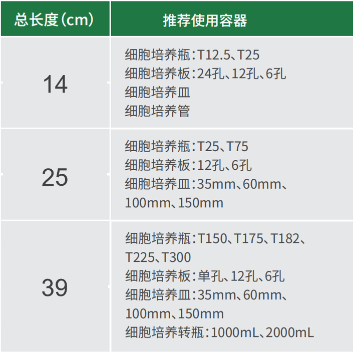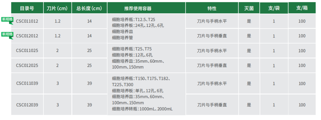 ◆ 細(xì)胞刮刀規(guī)格多樣,可滿足小型孔板至大容量培養(yǎng)瓶各種不同容器的細(xì)胞收集需求。